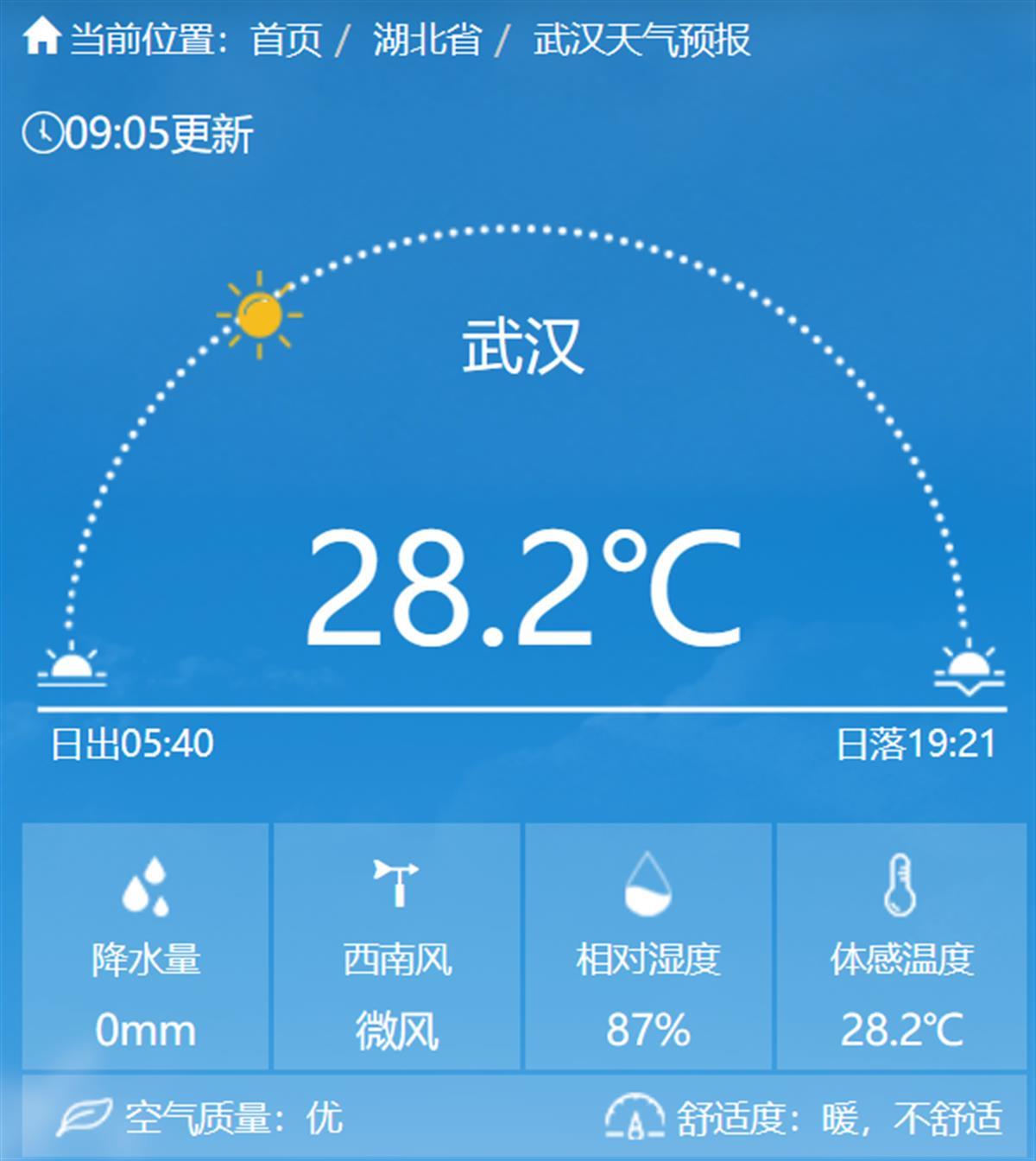 气象部门预计,今天(29日)白天武汉有小到中雨、局部大雨,伴有雷电,最高气温31℃,请有外出计划的朋友携带雨具,以免被雨水偷袭。