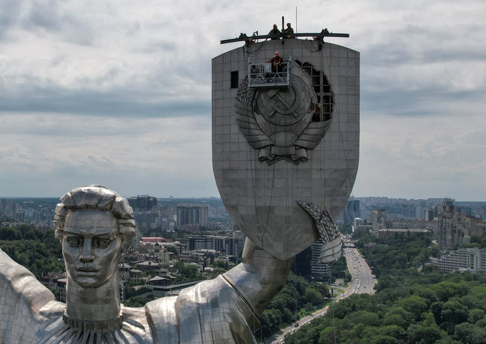 【环球网报道】据《基辅独立报》7月30日报道,拆除基辅祖国纪念碑上苏联国徽的工程已经开始,将在8月24日乌克兰独立日之前完工。