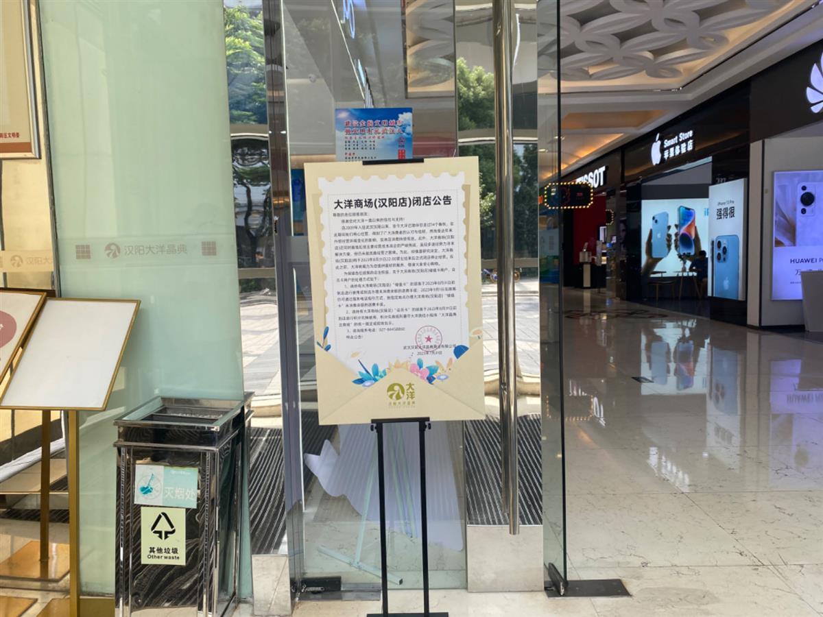 7月31日,武汉汉阳大洋晶典商业有限公司发布公告表示,因近年来外部经营环境变化的影响和后续主要经营成本高企的严峻挑战,大洋商场(汉阳店)将于2023年8月31日22:00营业结束后正式闭店停止经营。