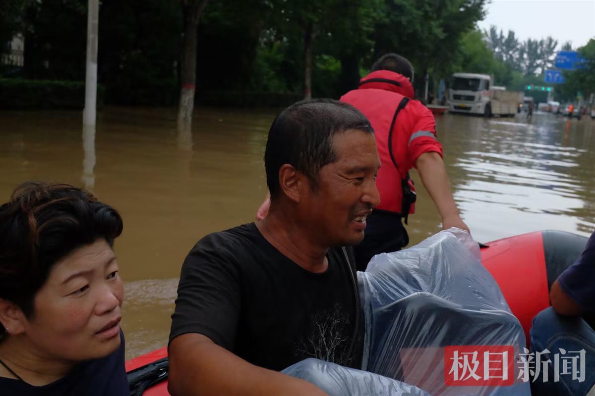 在这里参加救援的不止河南项城神鹰救援队,沈丘蓝天救援队也来了。“光是上午就救出八十来人,救了多少趟都没有数”,沈丘蓝天救援队马队长告诉极目新闻记者,自己从上午开始只休息了二十分钟,一直在连轴转。几支队伍共同派船进行救援,现场还剩余200多人,预计到晚上能全部转移完毕。