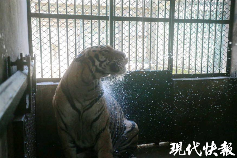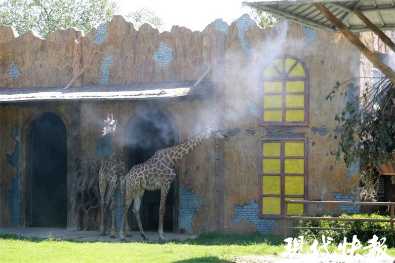 现代快报记者了解到,在进入高温天气之后,动物园针对动物们不同的习性,采取为地面冲水降温、开放纳凉小屋、调整夏季饲料比例、增加水分含量多、投喂有利于消暑的水果等多种方式来给动物们降温,让它们清凉度夏。