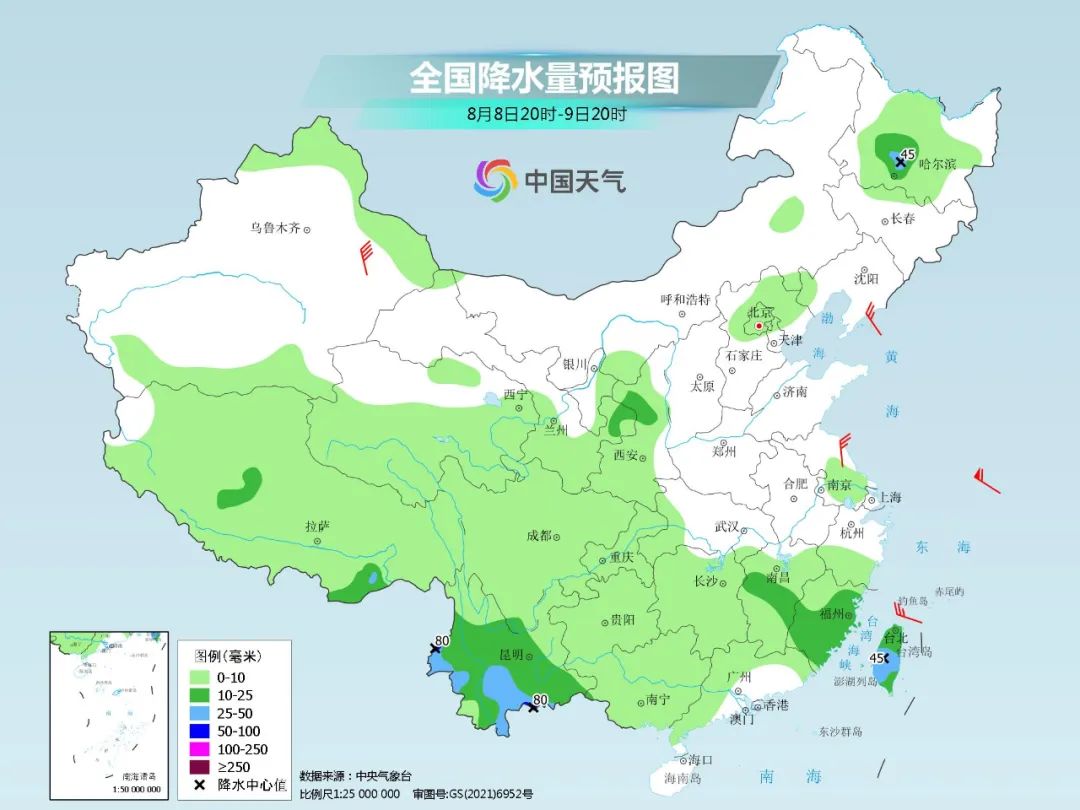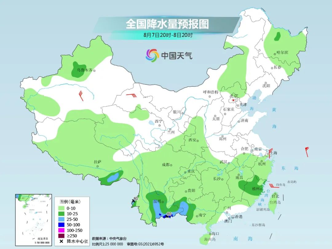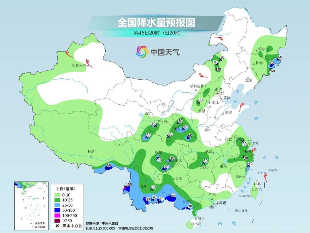 根据中央气象台中期预报,未来10天(8月6日-14日),我国主雨区位于东北地区、西北地区东部、江南大部、西南地区东部、华南及青藏高原东部和南部等地,大部地区累计降水量有60~80毫米,部分地区有100~180毫米,华南西部、云南南部和西部以及西藏南部局地超过200毫米;上述大部地区降水量较常年同期偏多2~5成,局地偏多1~2倍;我国其余大部降水偏少。