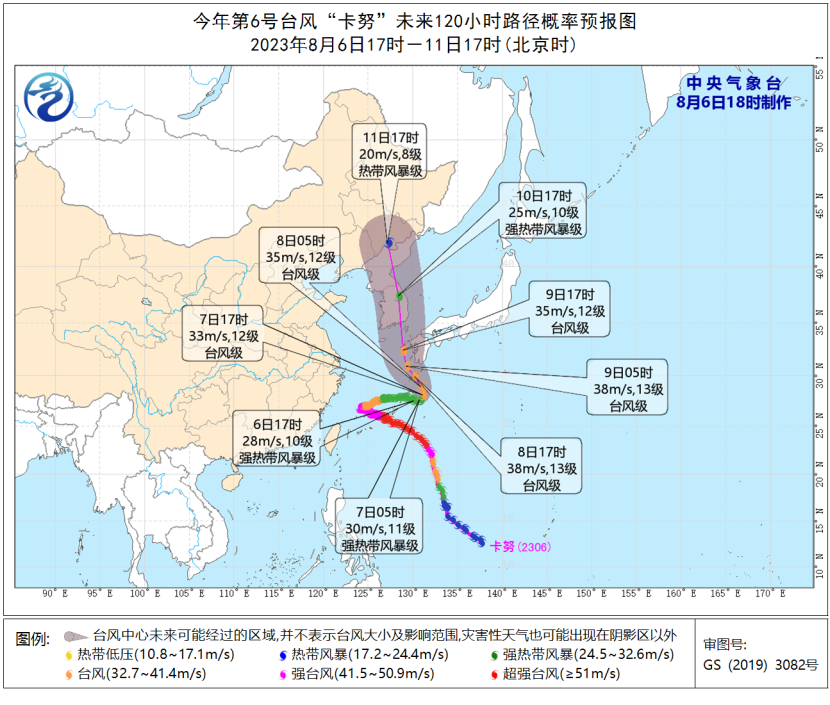 在“卡努”后期北上的过程中,仍需关注其西侧大风在东海和黄海东部长时间的影响,东海东部部分海域风力可达9-10级,阵风11-12级。提醒在上述海域航行、作业的船舶注意航行安全,做好防御工作。