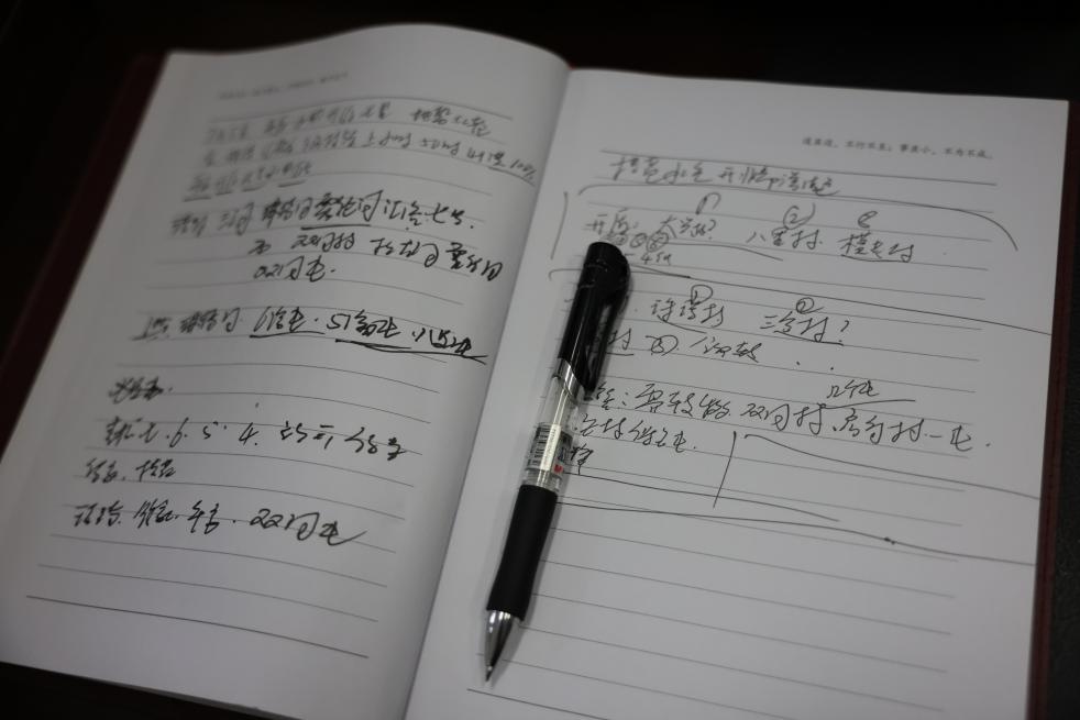 这是8月7日在骆旭东的办公桌拍摄到的一本没记完的笔记。新华社记者颜麟蕴摄