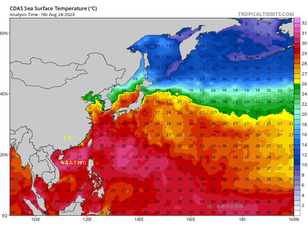 一方面,目前海温条件较好,普遍都在29℃以上。