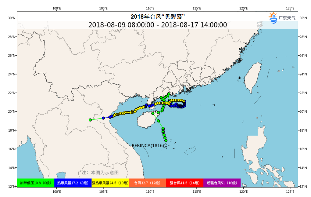 2018年台风“贝碧嘉”,先后在海南琼海、阳江海陵岛、湛江雷州三次登陆,在我省西部海面长时间徘徊摆动,近海回旋超过2圈。