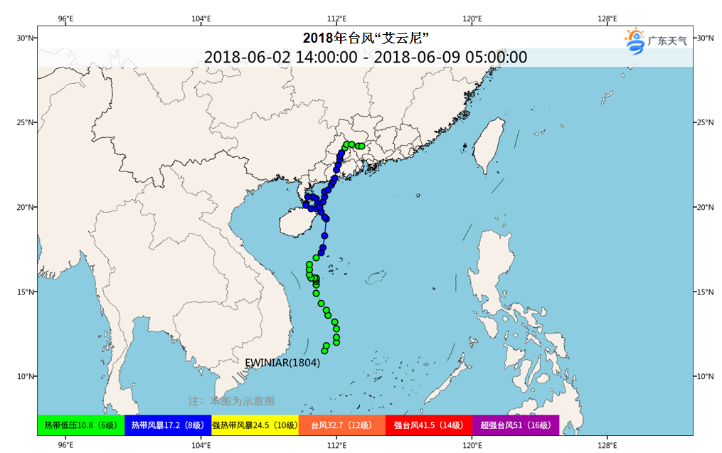2018年台风“艾云尼”,登陆湛江后才有名字,在琼州海峡打个圈,画出一条“红领巾”。