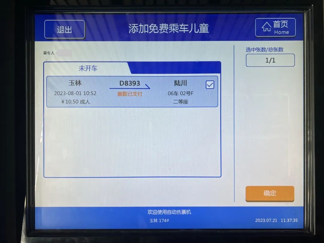 选择免费乘车儿童并点击“确认”,即可完成申报。