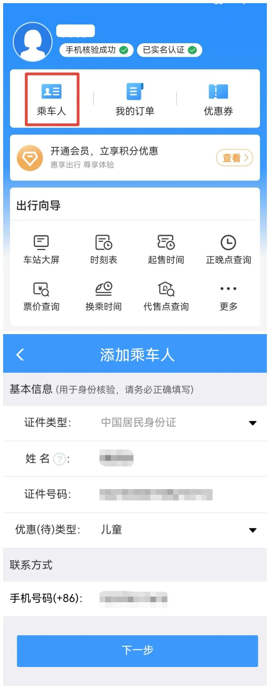 在铁路12306App上将免费乘车儿童添加为乘车人。按顺序点击“我的”-“乘车人”-“添加”,按提示输入免费乘车儿童的姓名、证件号码、联系方式等信息,即可添加成功。