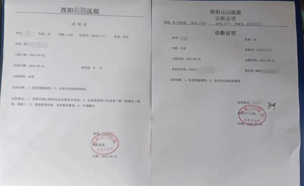 孙先生表示,经医生检查,诊断出妹妹轻型颅脑损伤、全身多处软组织损伤,“身体上的伤害远远比不上心理上的伤害严重。一直到现在,妹妹都不太愿意和我们交流,一到晚上就哭,很害怕。”
