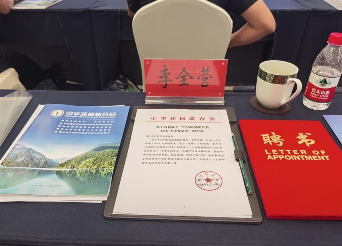该微信还绑定了一个叫做“品牌院品牌防伪部”的视频号,视频号简介为“国资委ESG课题组·专家”等信息。该视频号内容显示,今年6月20日,李全营曾出席中华环保联合会ESG专业委员会成立大会。据介绍,该会议由中华环保联合会主办。在立有李全营名牌的桌子上,还有一本红色的聘书。次日,在媒体公开报道中,还有李全营与其他参会人员的合照。