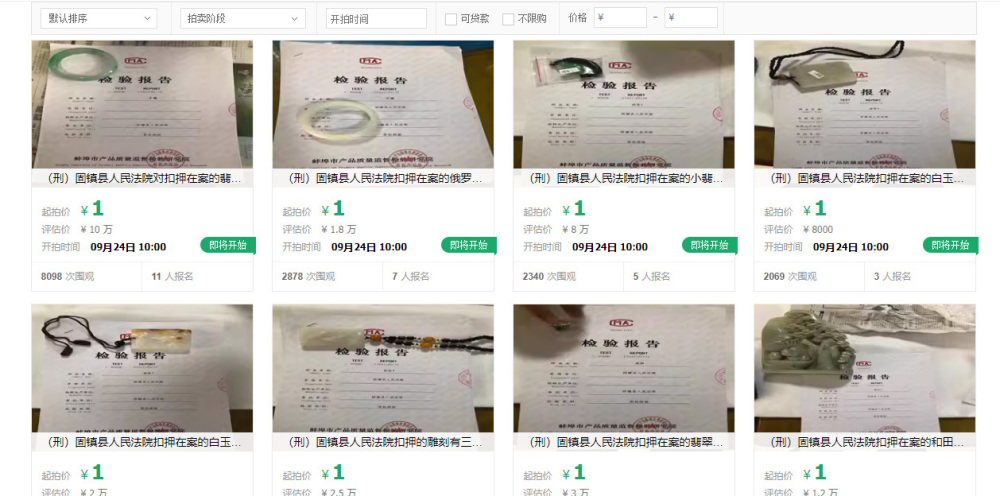 大皖新闻讯评估价为10万元的翡翠手镯,起拍价仅为1元;评估价为8万小翡翠挂件,起拍价也是1元.....9月24日,安徽省蚌埠市固镇县人民法院将对扣押在案的11件翡翠、玉石制品进行网络司法拍卖,起拍价均为1元,超低的起拍价吸引着多人关注和报名。
