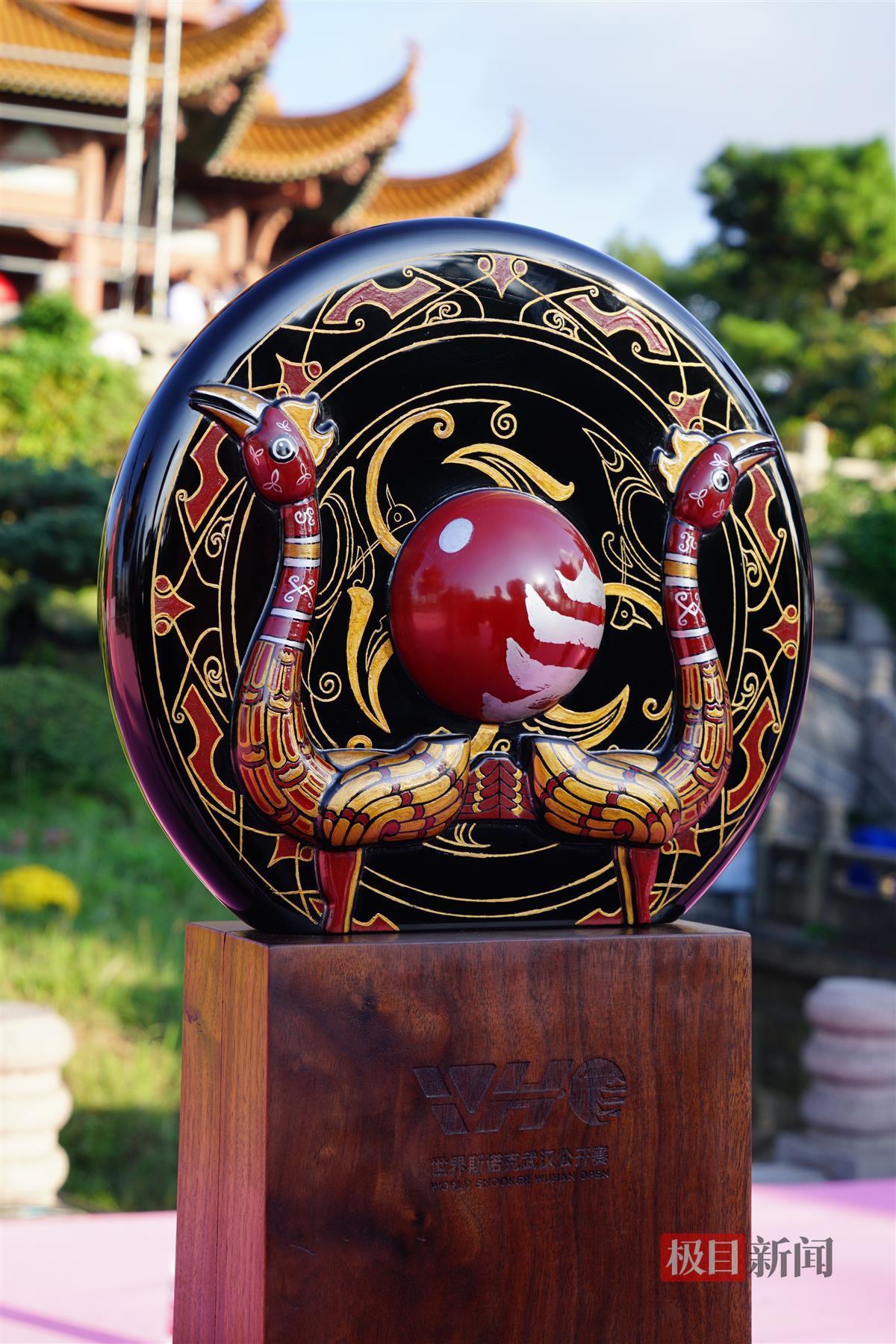据了解,奖杯的制作也独具“楚”心,运用了楚式漆器髹饰技艺。参与奖杯制作的陈翔宇老师介绍,楚式漆器髹饰技艺不仅是国家级非物质文化遗产,更是极具荆楚传统文化的高价值技术。此次制作运用了漆艺髹饰技法中的镶嵌、彰髹、戗金、莳绘等技艺和漆画创作技艺,历经3D打印、擦漆、砥粉、底图、揩清等多道工艺,经过60余次纯手工髹饰,历时100余天,最终精心打磨出冠军奖杯成品。