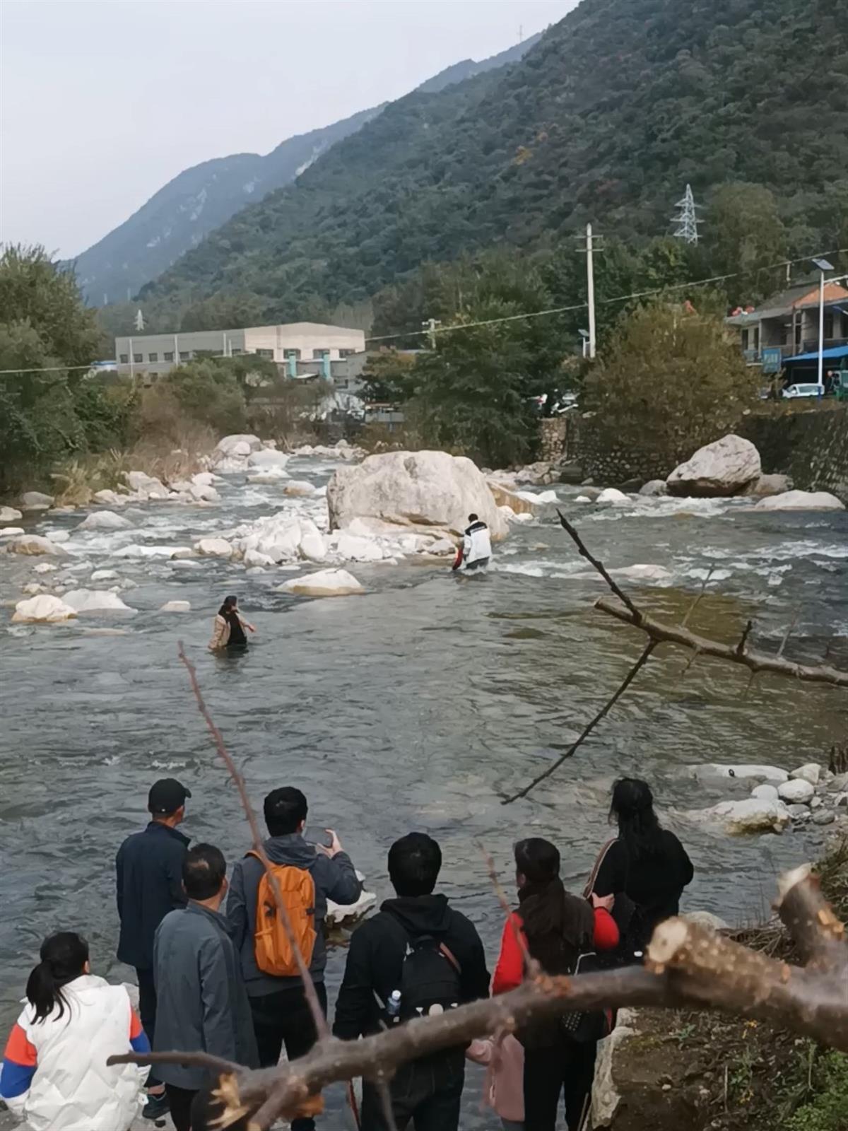 10月21日下午,西安鄠邑区圭峰山下太平河,两名游客过独木桥时掉进河水中,被三名小伙救上岸。当地政府工作人员告诉极目新闻(报料邮箱:jimu1701@163.com)记者,落水两人走的独木桥非常窄,事发时现场有工作人员引导游客走另一条更安全的桥过河。
