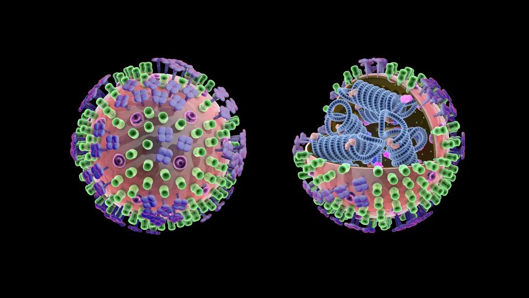 ▲流感病毒示意图 图片来源:中国数字科技馆