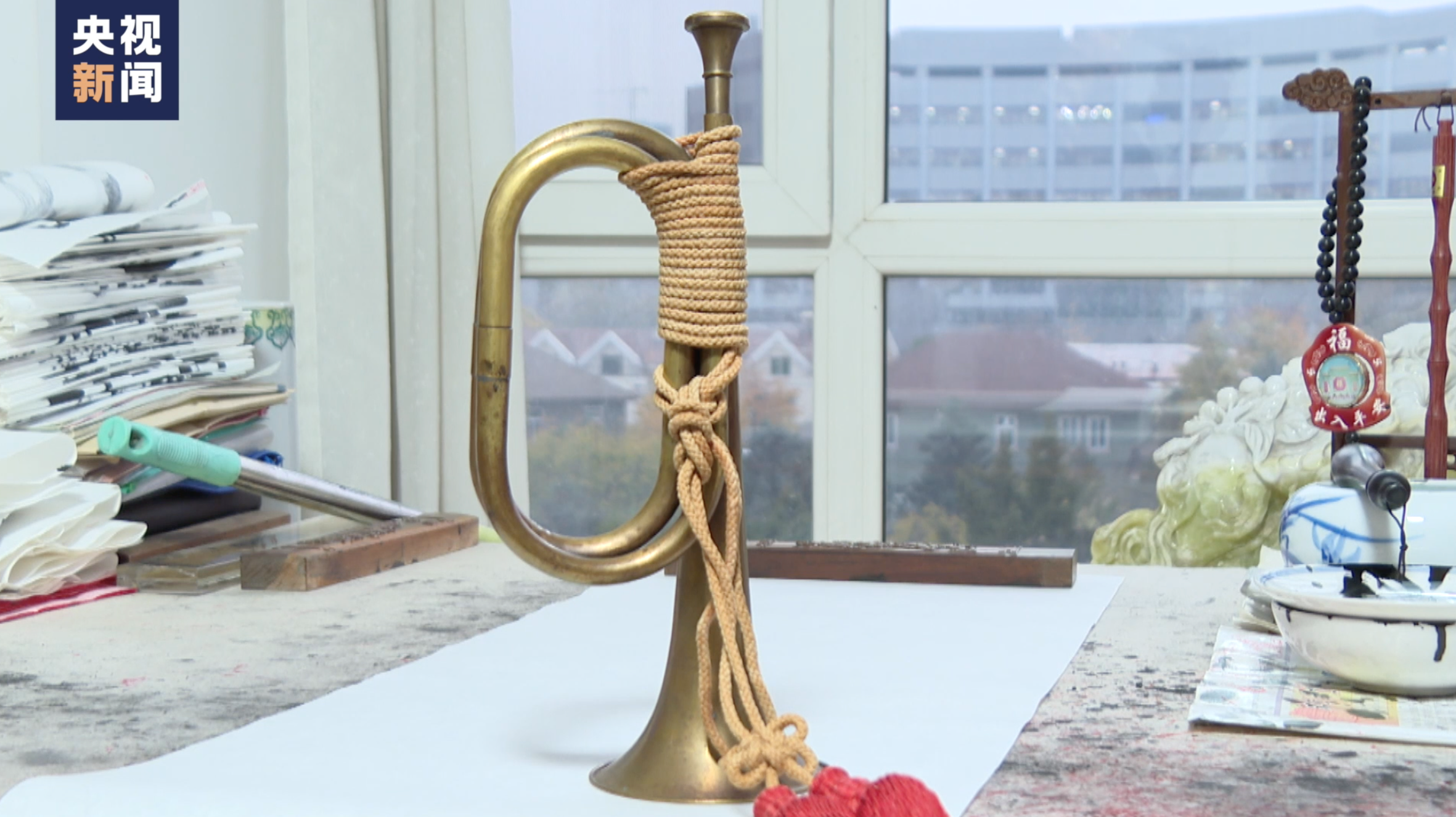 当年出国作战,南启祥年仅15岁,担任部队的司号员,一把军号至今被他擦拭得一尘不染。