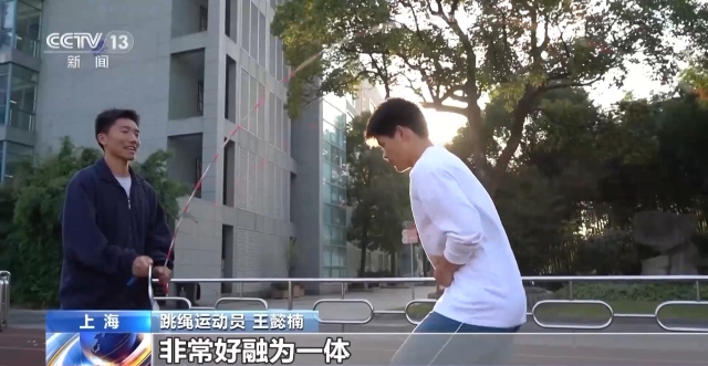 跳绳运动员王懿楠:我们三个在一起时间会比较多,一起训练的时间也是很多的,所以大家的习惯互相都了解,非常好地融为一体。
