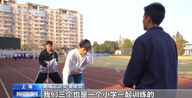 跳绳运动员黄俊凯:这次拿奖,我们三个也是一个小学一起训练的,可能彼此也比较熟悉。