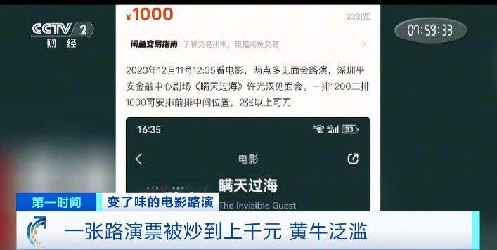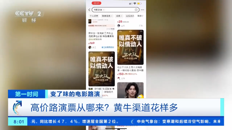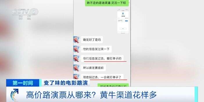 (央视财经《第一时间》)很多新电影上映宣传会在影院安排“电影路演”,也就是在观影场次中,安排主创、主演与观众见面。因为有明星到场,这种方式受到不少影迷的推崇,而票价也动辄被炒到几百元甚至上千元。这些高价“路演”票,究竟是谁在卖?