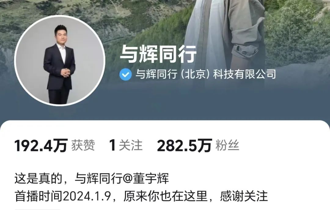 2023年12月26日,董宇辉新账号“与辉同行”正式开通,企业认证为与辉同行(北京)科技有限公司。2023年12月30日,“与辉同行”发布视频,官宣2024年1月9日开启首播。