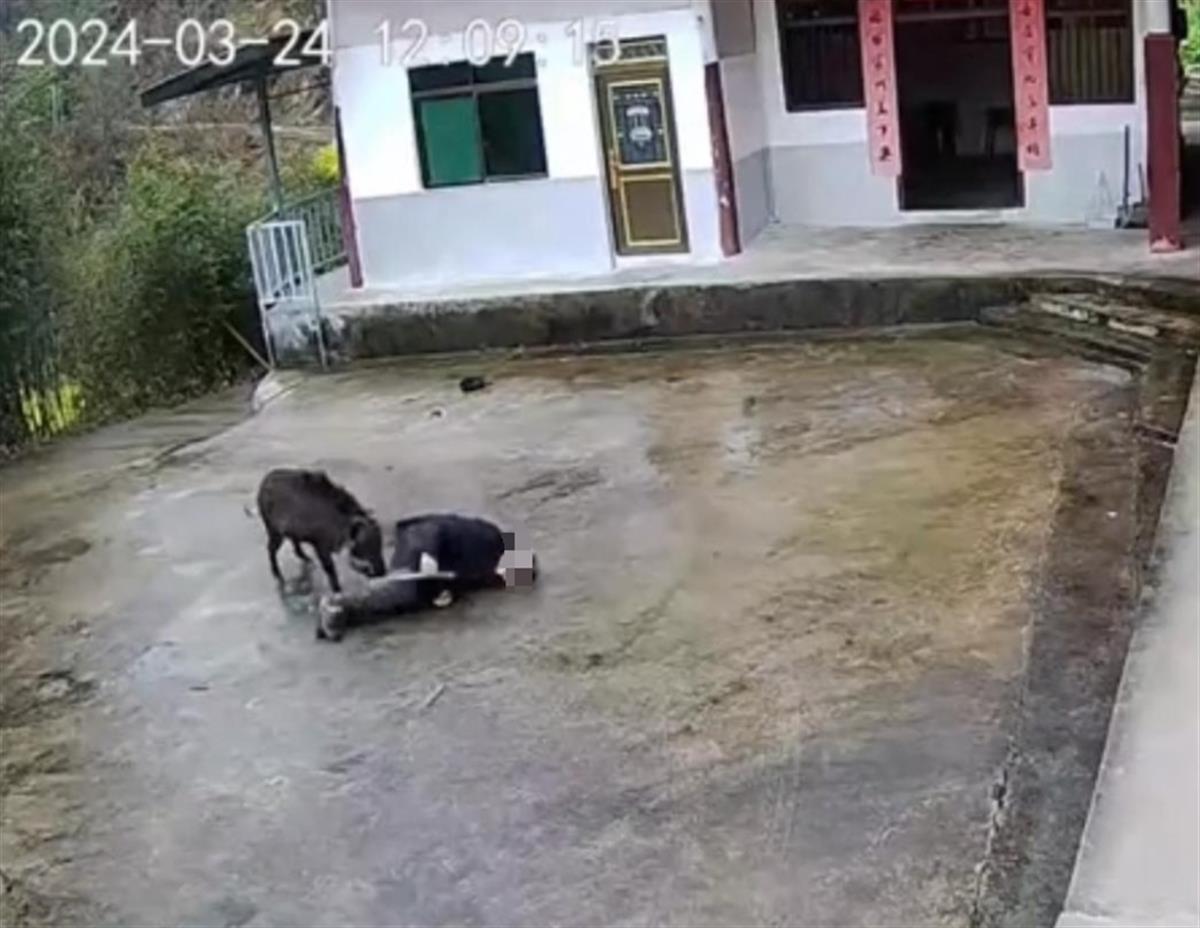 网友发布的监控视频显示,3月24日中午12时许,一位老汉在院子散步时,一头野猪突然冲出将其扑倒在地。老人呼救并尝试起身,但再次被扑倒,随后他拿起木棍与野猪搏斗,野猪逃走。