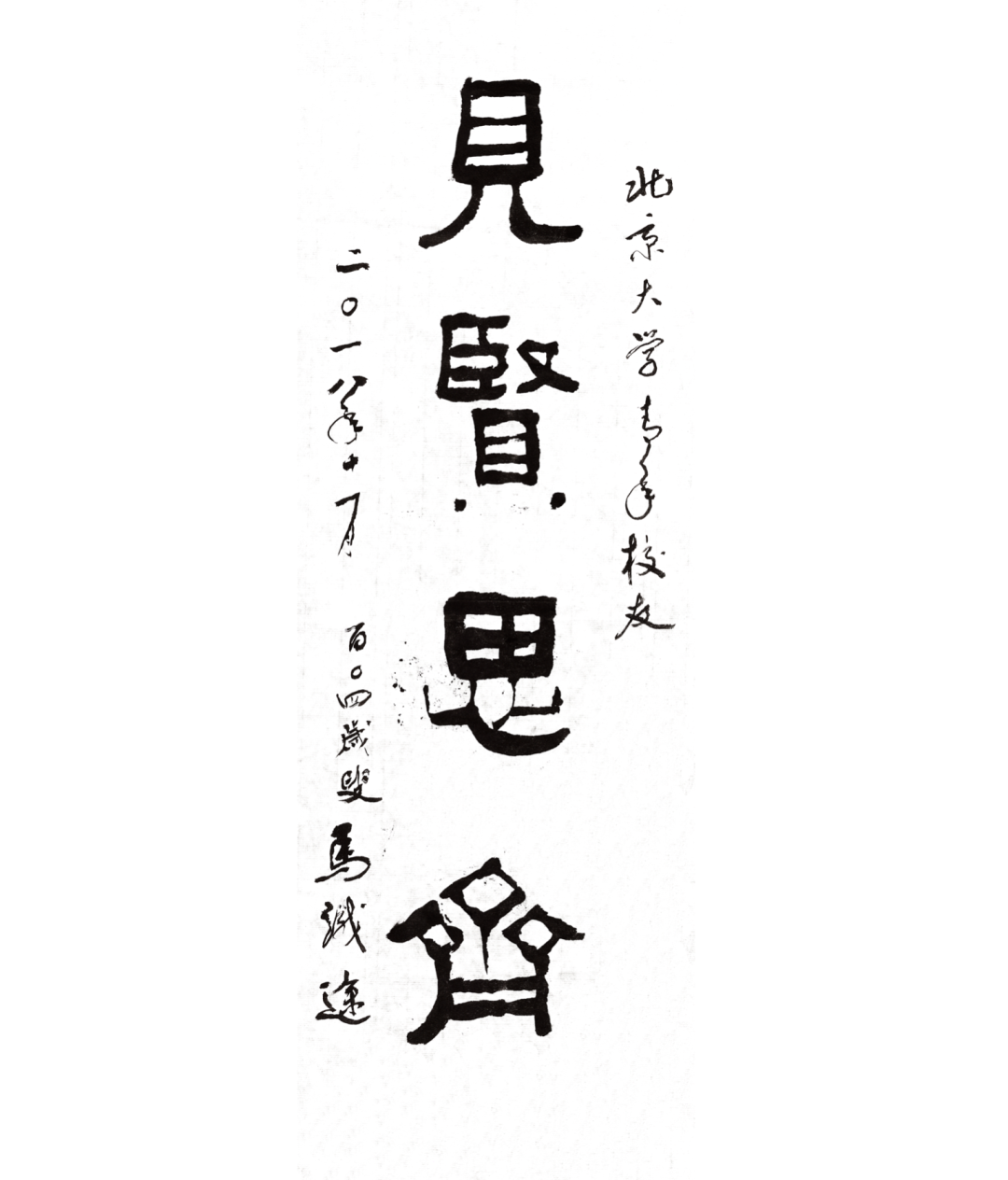当为青年北大人题字时,他一笔一划、庄严而郑重地写下“见贤思齐”——“看到别人好的要知道学习”,这是马识途多年从学、行事的肺腑之言,落笔时娓娓道来、宛然含笑,也承载了他对北大学子的殷切嘱托与祝愿。