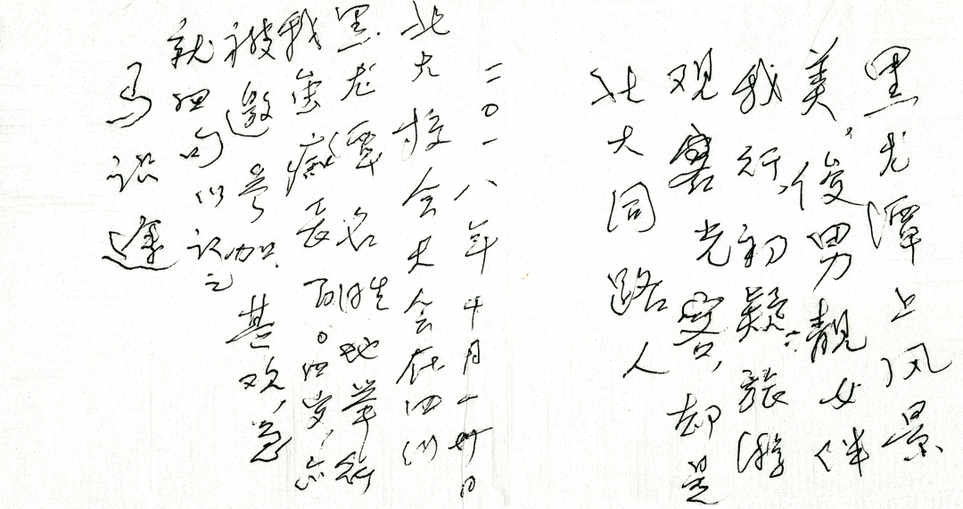 “初疑旅游观光客,却是北大同路人!”马识途参加会议并游览黑龙潭后,曾即兴在餐巾纸上写下这样一首诗。却是北大同路人——回看这一路漫长,马识途以北大之精神,皓首昂扬、步步铿锵;而北大精神亦借由马识途之一言一行,向更深、更远处激荡。