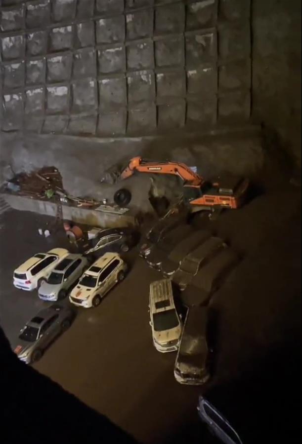 一家酒店停车场遭受泥石流袭击(网络视频截图)