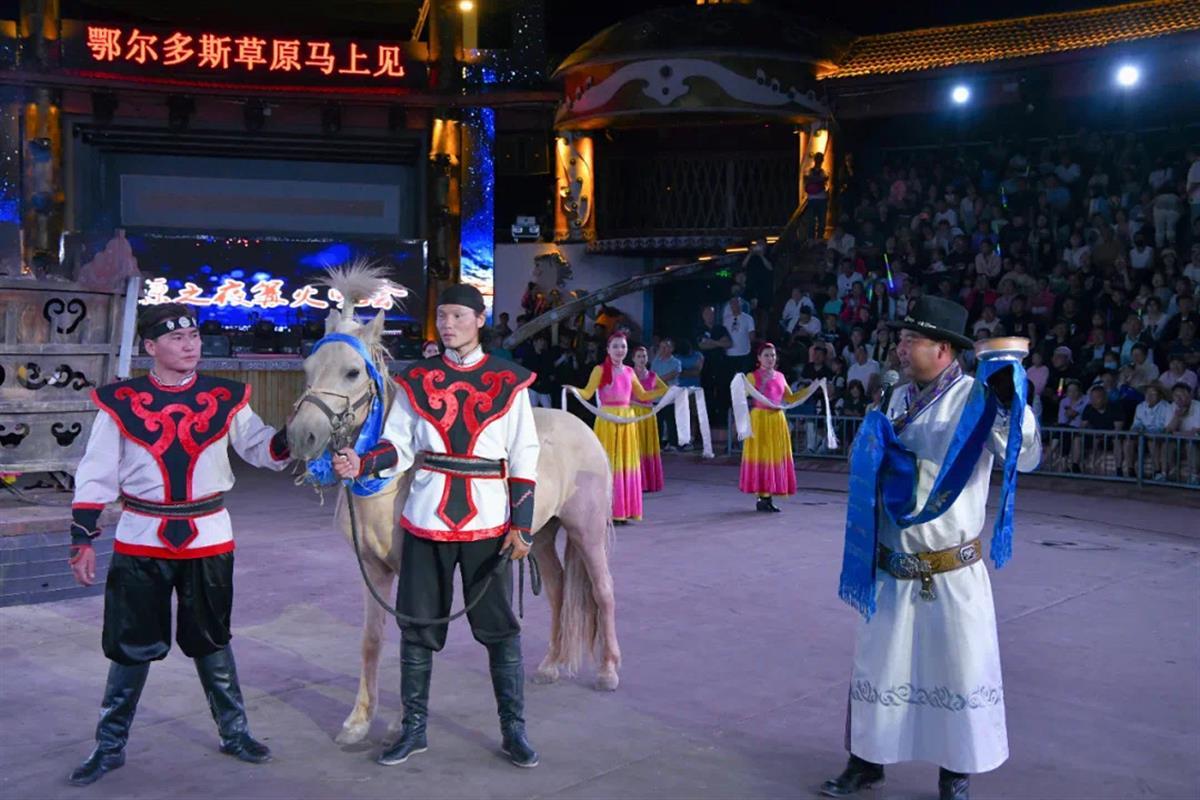 据鄂尔多斯草原旅游区公众号,2024年6月8日晚,在鄂尔多斯草原篝火晚会现场,来自宁夏的游客赵先生通过现场抽券,获赠蒙古马一匹。赵先生在接受媒体采访时表示,抽中蒙古马非常开心,之后还会考虑去内蒙古玩。