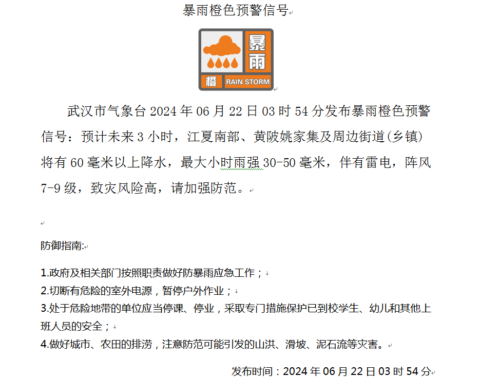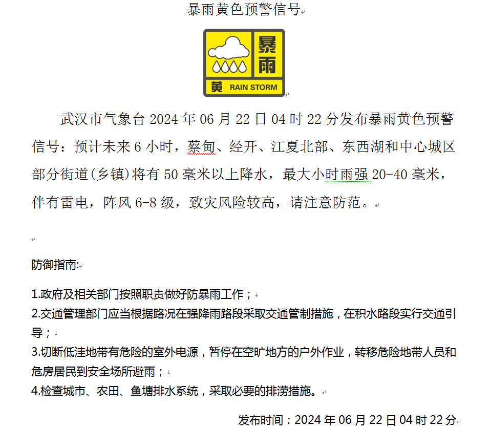 根据武汉市气象台22日6时