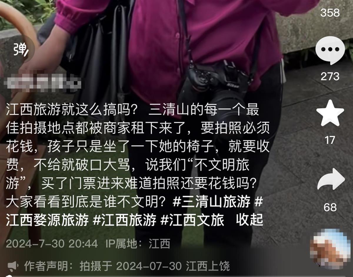 游客反映江西三清山景区内拍照要收费,景区回应:不坐商家的凳子不收费