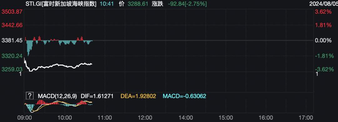 富时新加坡海峡指数上午盘中则一度下跌超过3%。