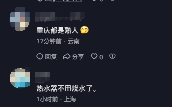 见此,网友们也在评论区打趣“重庆的朋友们还吃火锅吗”“家里水龙头流出来的都是开水”。