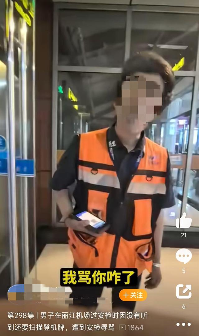 此前报道:丽江机场一工作人员被曝辱骂旅客,机场方:态度确实很恶劣,领导正与他谈话