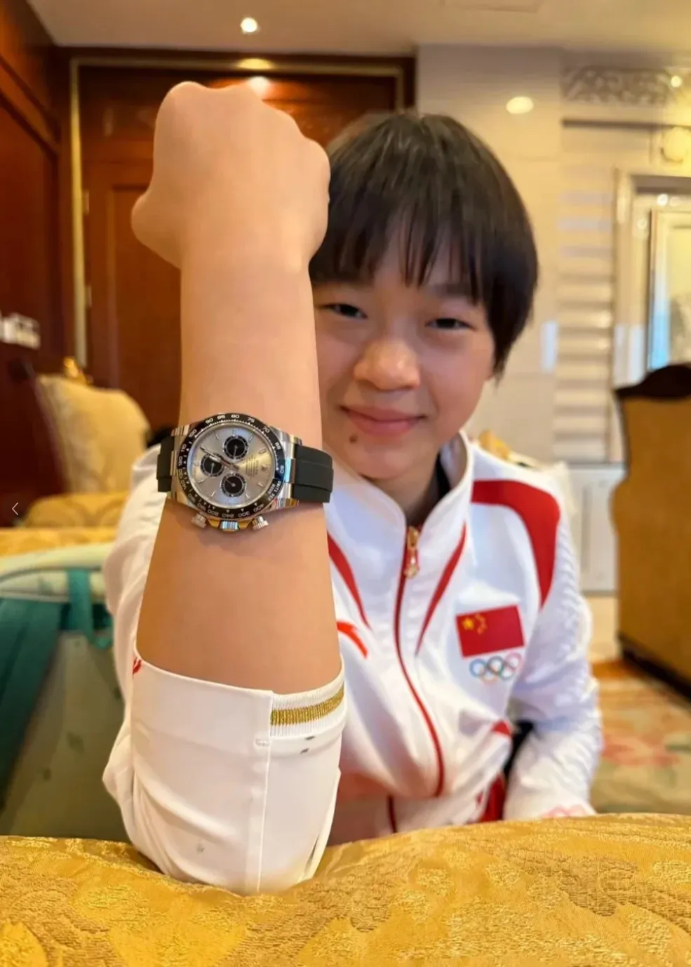 近日,全红婵分享了一段戴劳力士手表的视频引发网友争议。视频中全红婵向镜头展示自己戴了手表的手腕。