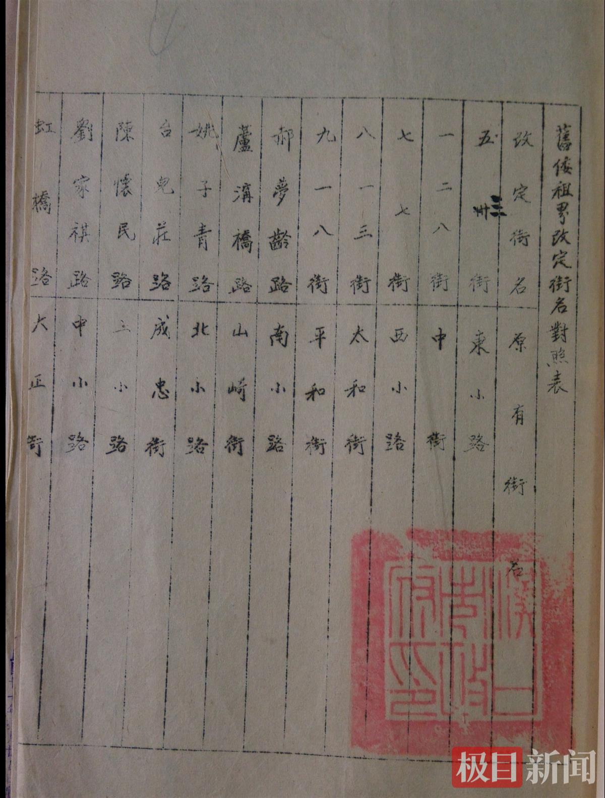 湖北省档案馆馆藏武汉市路街改名对照表档案