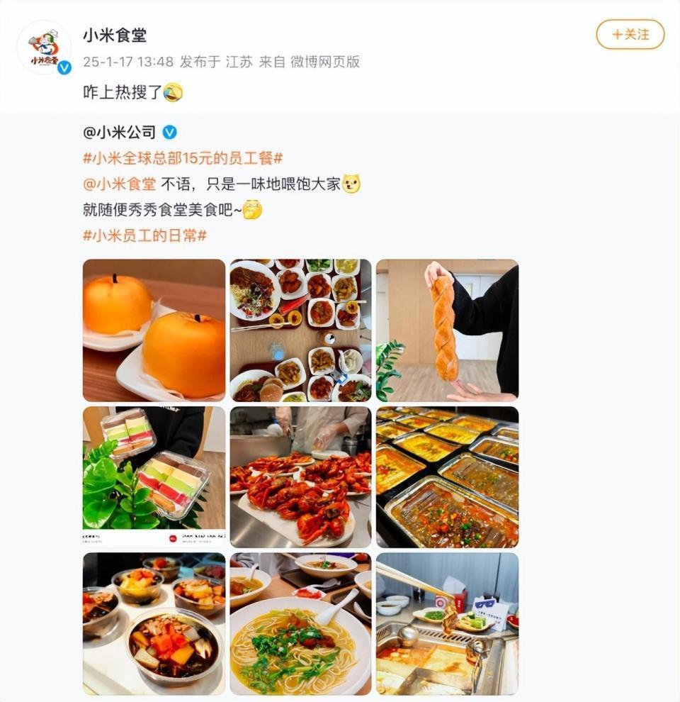 1月17日,#小米全球总部15元的员工餐# 冲上热搜,引发热议。