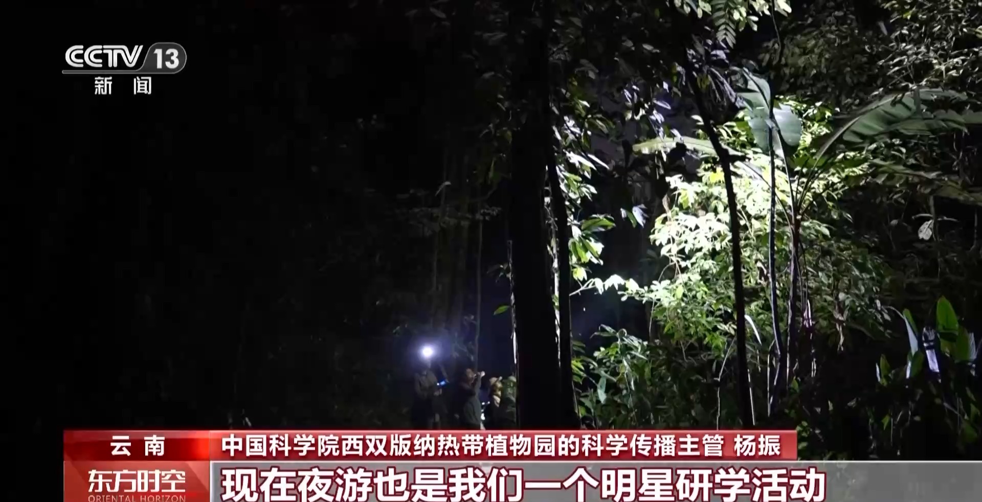 中国科学院西双版纳热带植物园的科学传播主管 杨振:现在夜游是我们的一个明星研学活动,现在每年我们开展这种夜游活动有上千场。夜游活动也能促进我们研究的一些发现。