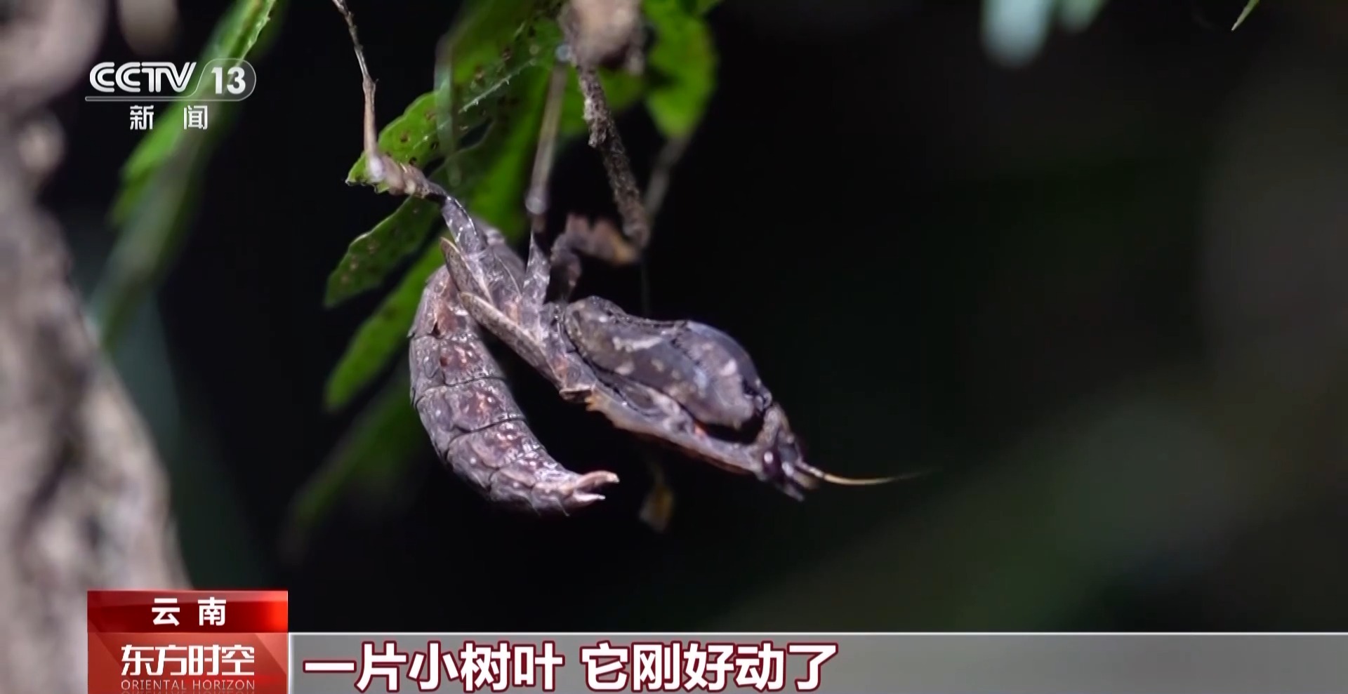 夜游爱好者:这是一个滇叶䗛,叶䗛在国内大部分都是国家二级保护动物,通常都喜欢在叶子的背面,因为它整个腹面模拟的质感就像叶子的正面,所以在这个角度你看到的叶子,可能正好是它的肚子,就更像一片叶子。