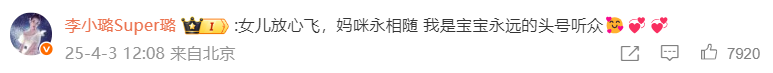 在评论区,甜馨的爸爸妈妈贾乃亮和李小璐也纷纷留言为其助力: