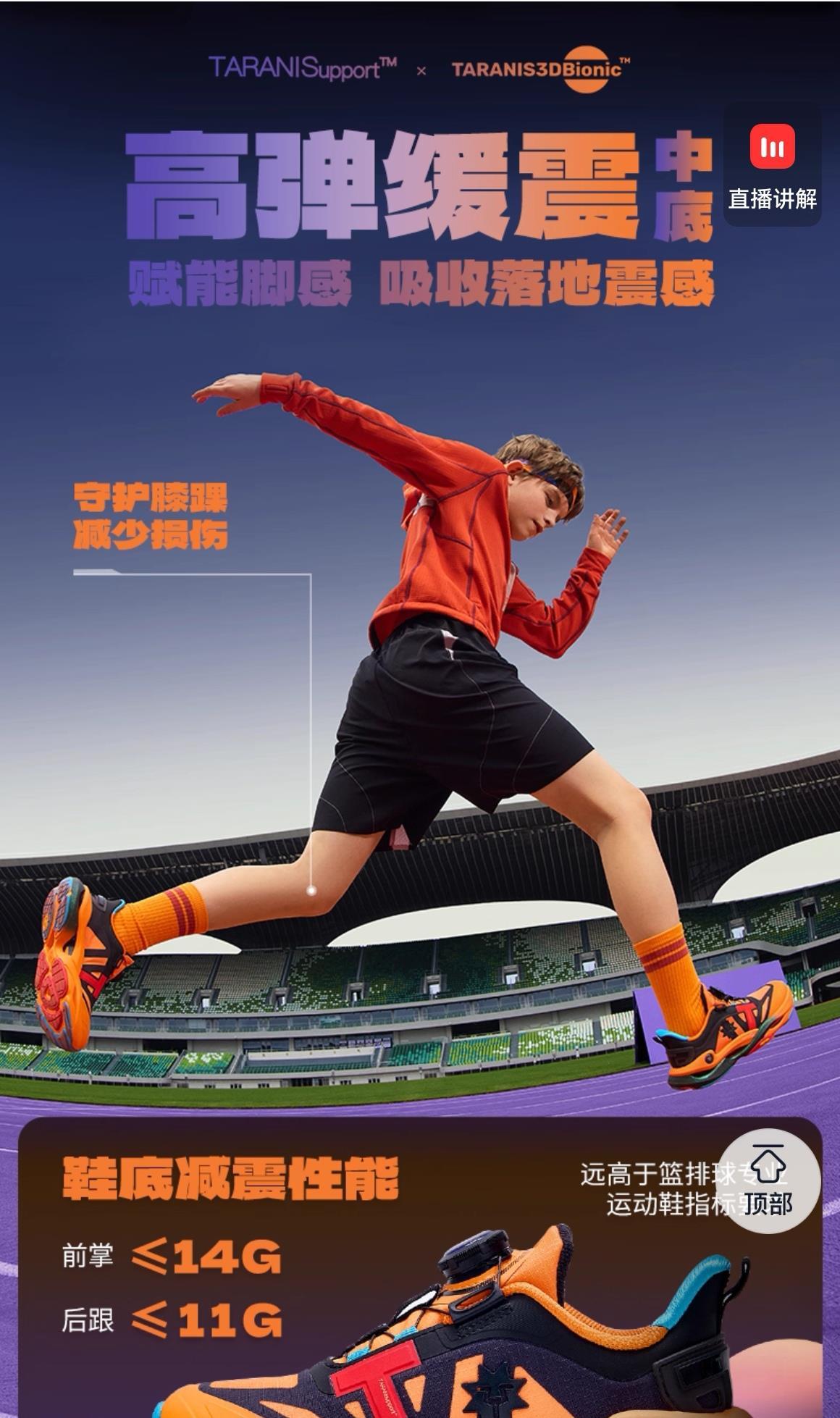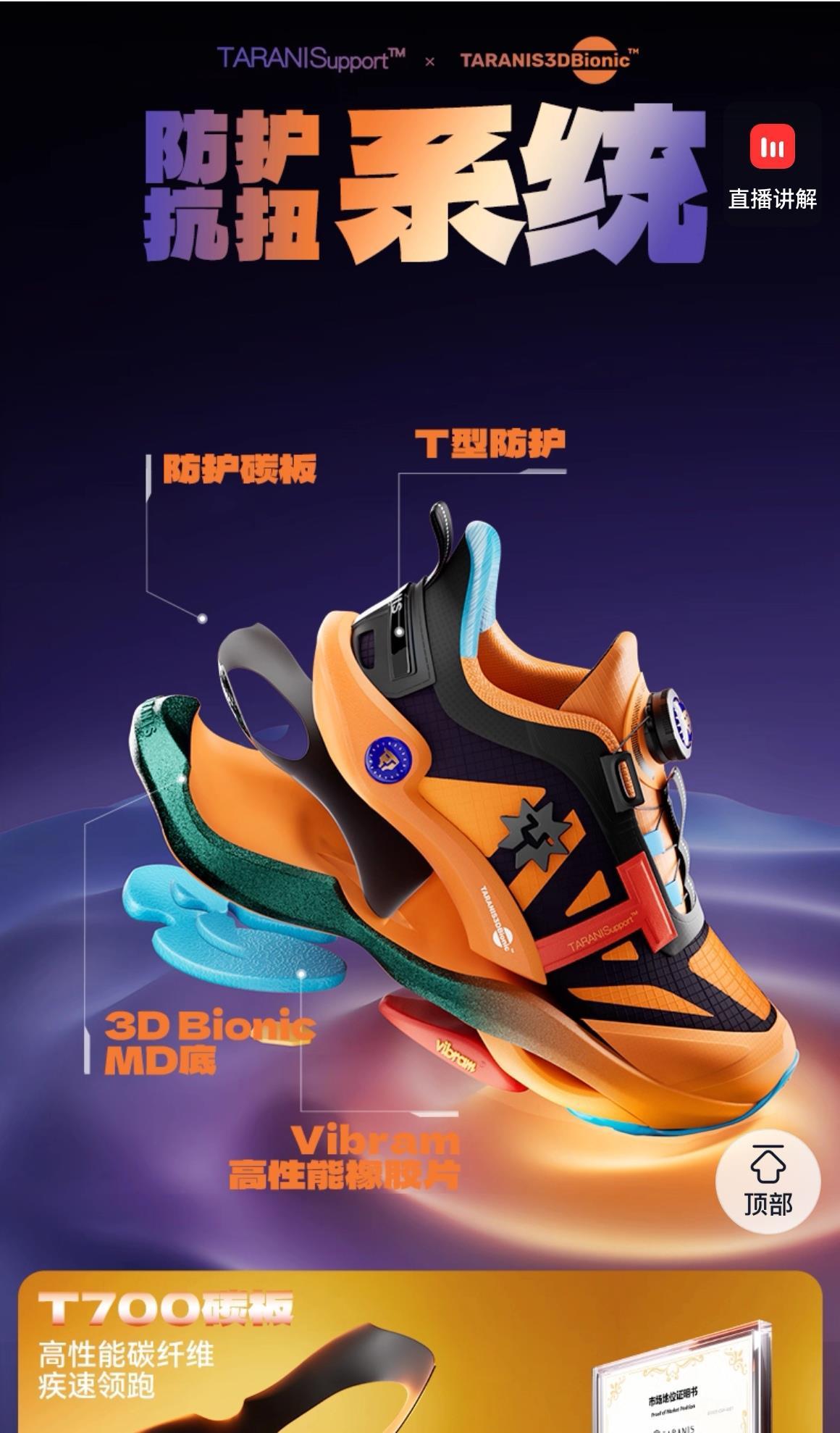 记者在泰兰尼斯kids天猫旗舰店看到,多款青少年抗扭碳板运动鞋在售,其中一款标价1499元的产品,详情页醒目标注“航天级半掌碳板”“Vibram黄金大底”“Ortholite鞋垫”等配置,宣称可实现“防护抗扭,高弹缓震”,精准击中家长对孩子运动安全和足部发育的关切。