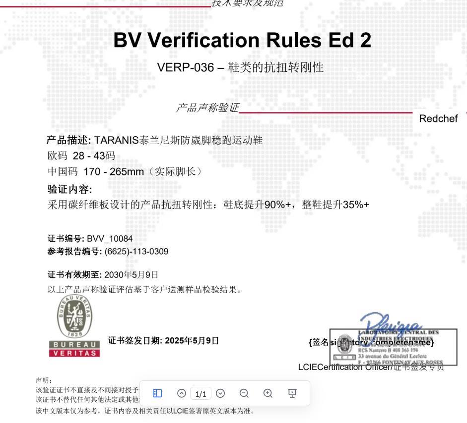 至于半掌碳板为什么可以保护青少年足部健康,是否有权威医学的鉴定报告,泰兰尼斯kids天猫旗舰店客服表示“没有医学验证报告”,只是给出了一个“鞋类的抗扭转刚性”的产品声称验证截图,但该验证报告并未显示于商品详情页中。