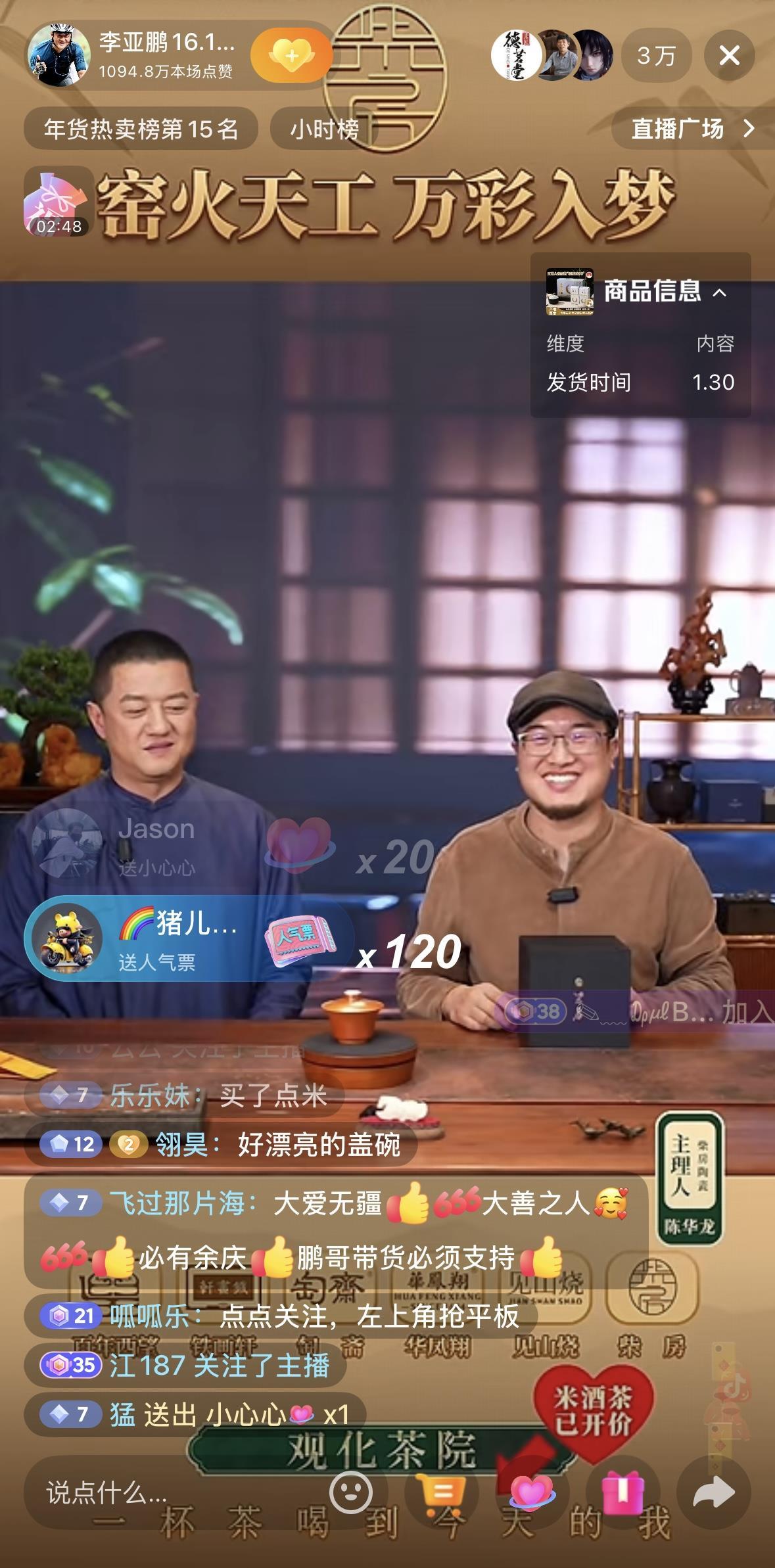 李亚鹏直播间点赞超1000万 来源:李亚鹏个人社交平台