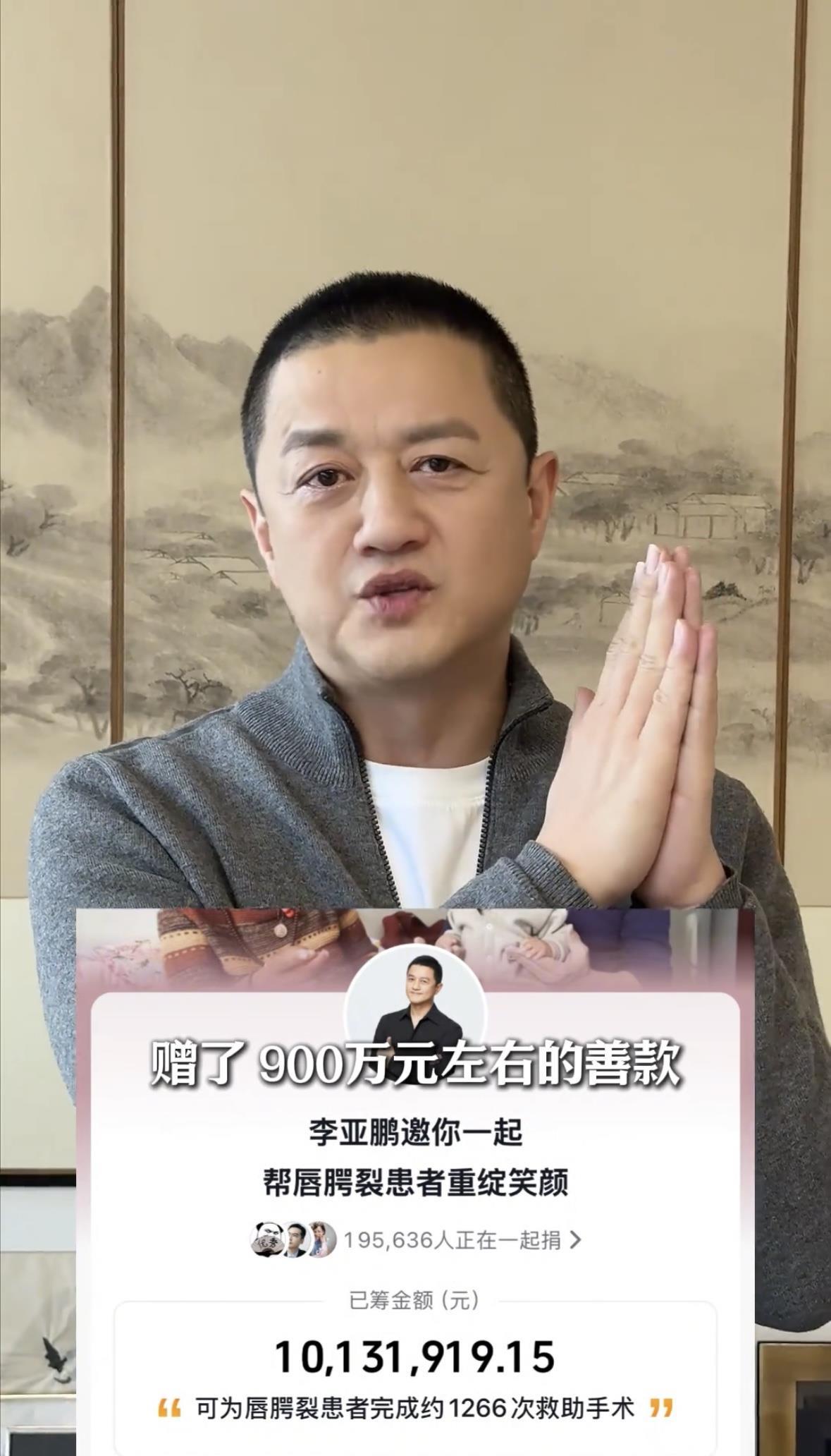 李亚鹏发视频感谢网友捐款 来源:李亚鹏个人社交平台