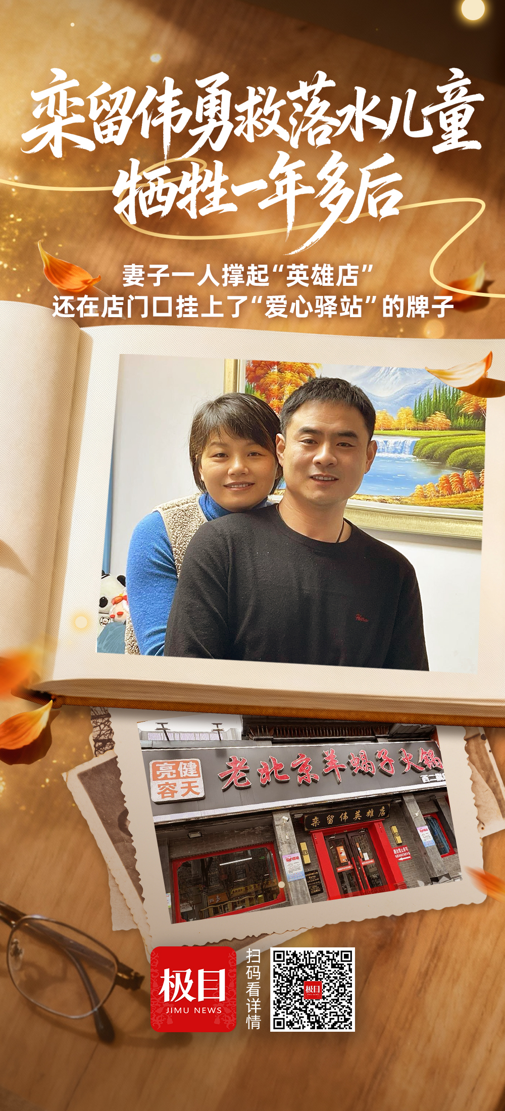 这家店是栾留伟生前和薛巧艳一同经营的。他救人牺牲后,这家店便成了人们表达敬意与缅怀的地方。