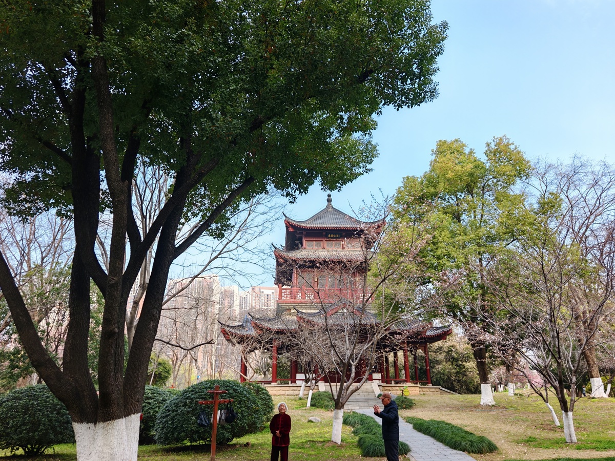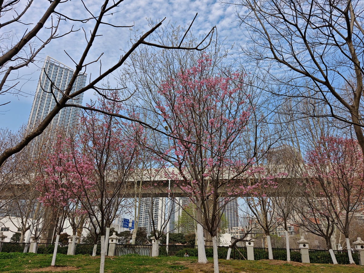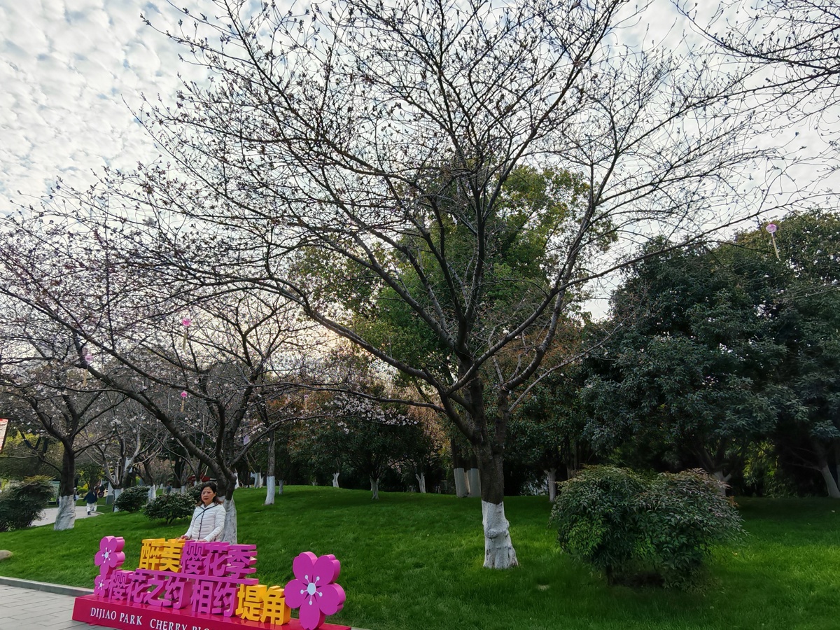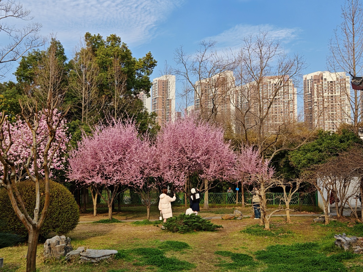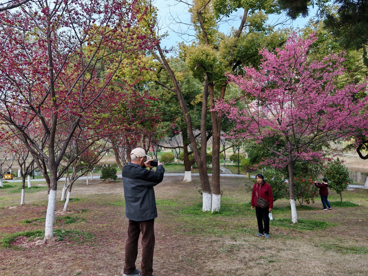进入3月中旬,江岸区堤角公园不少地方的第一波樱花已经开放,吸引市民赏花打卡。