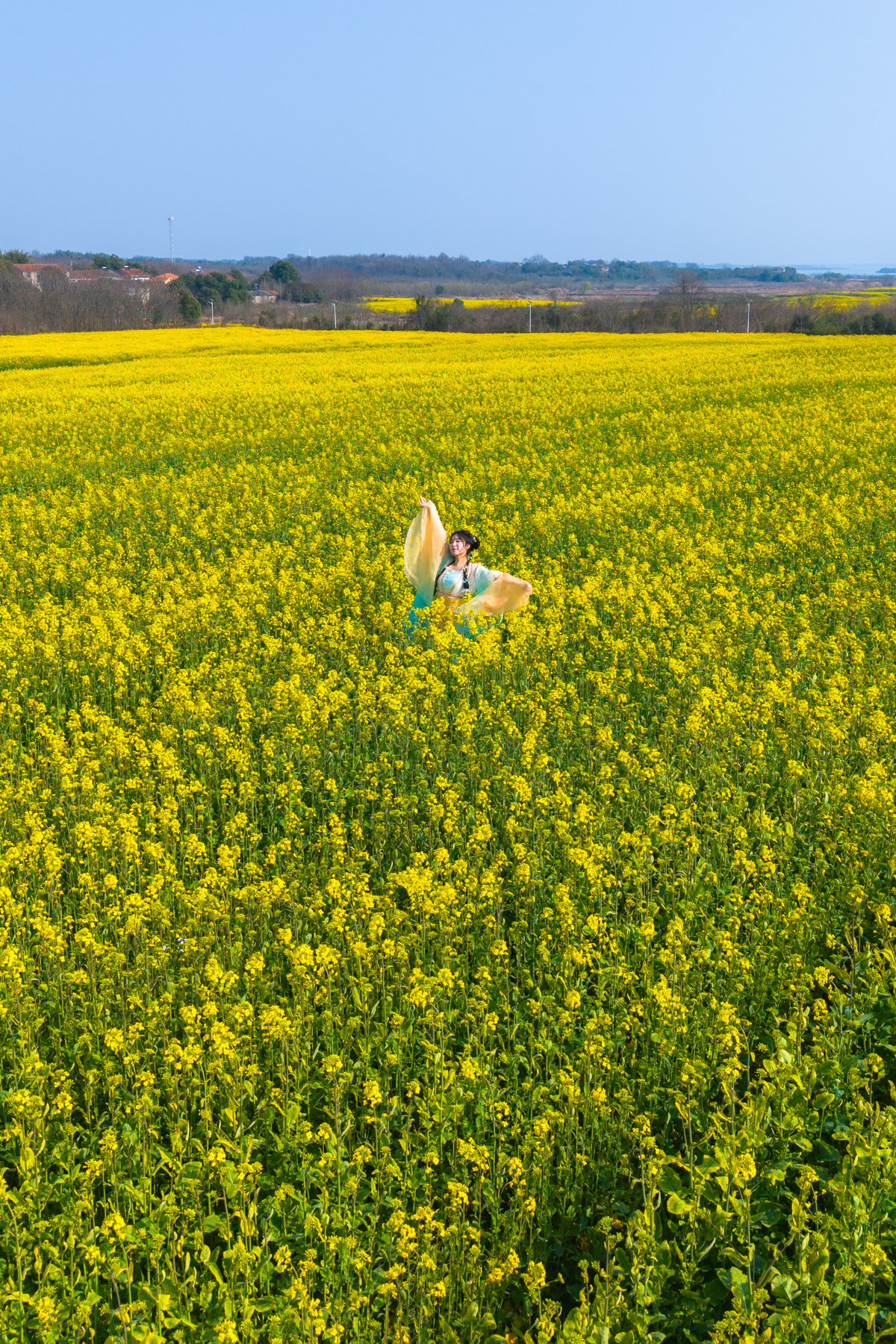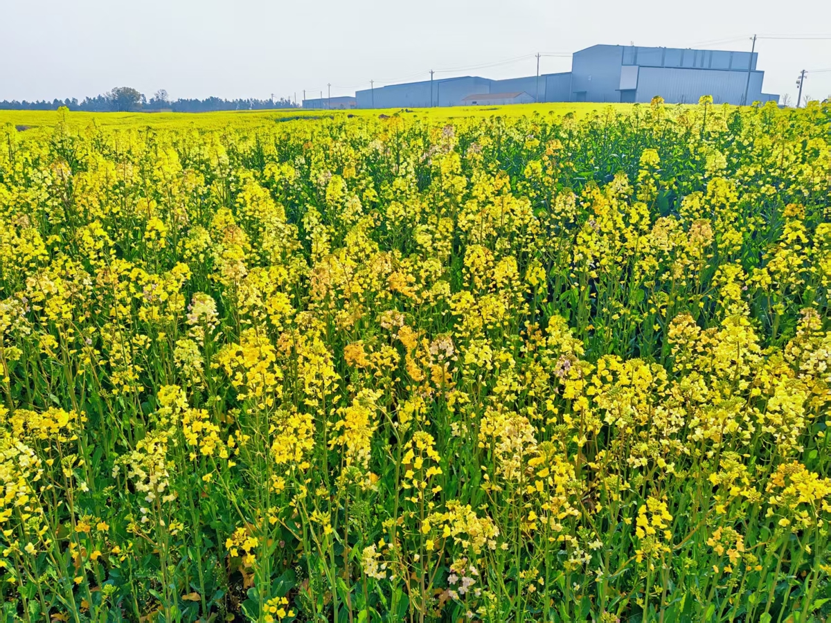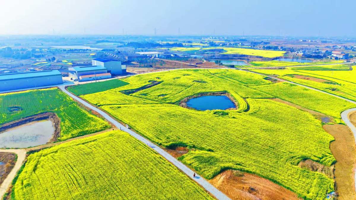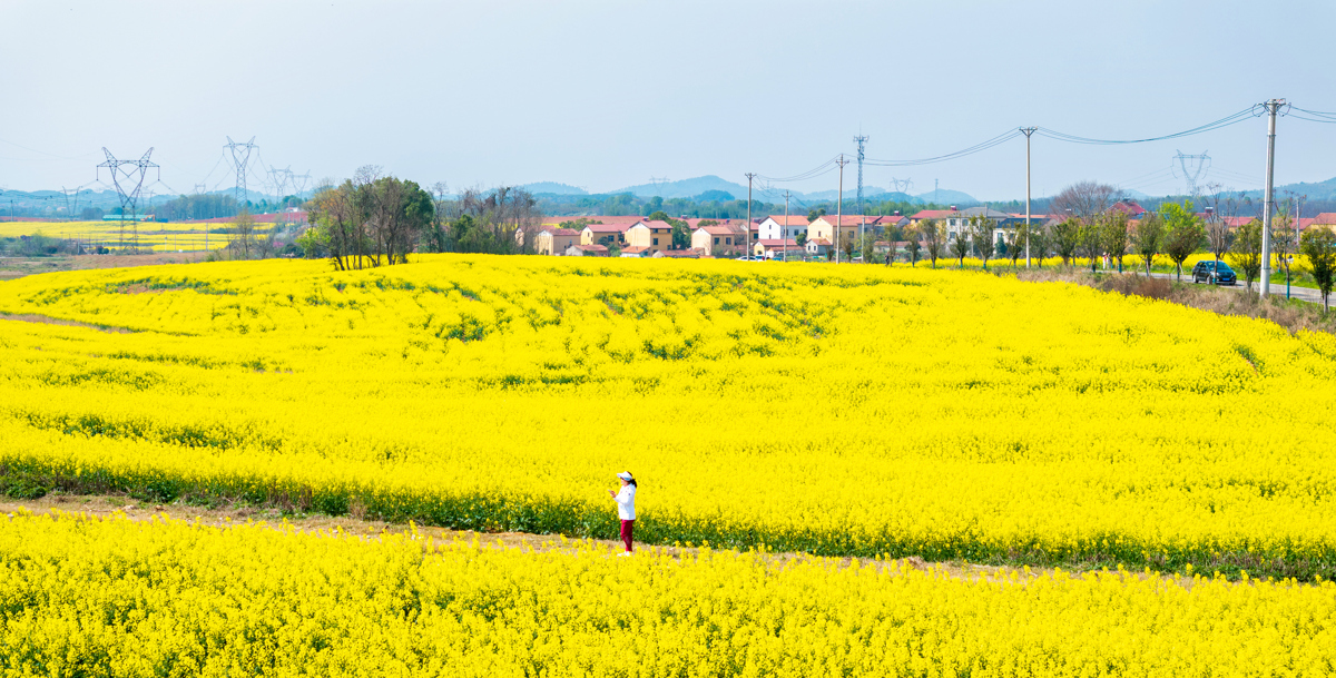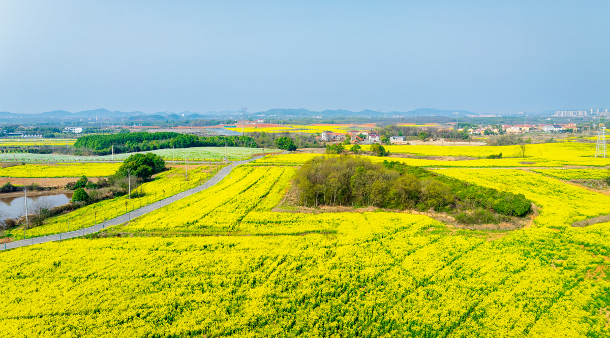 武汉长江新区朱家河,被漫天碎云温柔笼罩。油菜花田顺着河岸绵延数公里,铺成一片流动的金色海洋,与澄澈的河水相映成趣。风过处,花浪轻摇,细碎的阳光在花瓣上跳跃,清甜的香气漫过堤岸,裹着河水的湿润气息。远处,老房与新楼错落而立,塔吊勾勒着城市生长的轮廓,让这片“武汉的婺源”在乡野诗意与都市脉搏间,晕染出独有的生机。