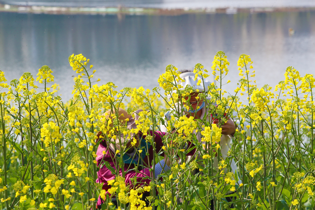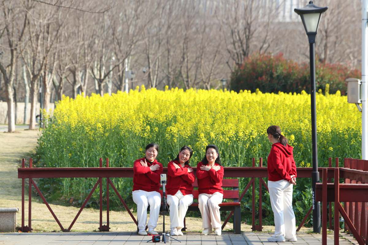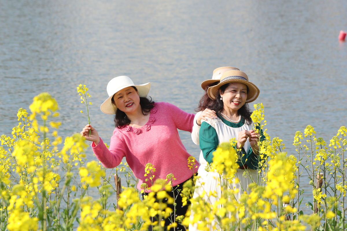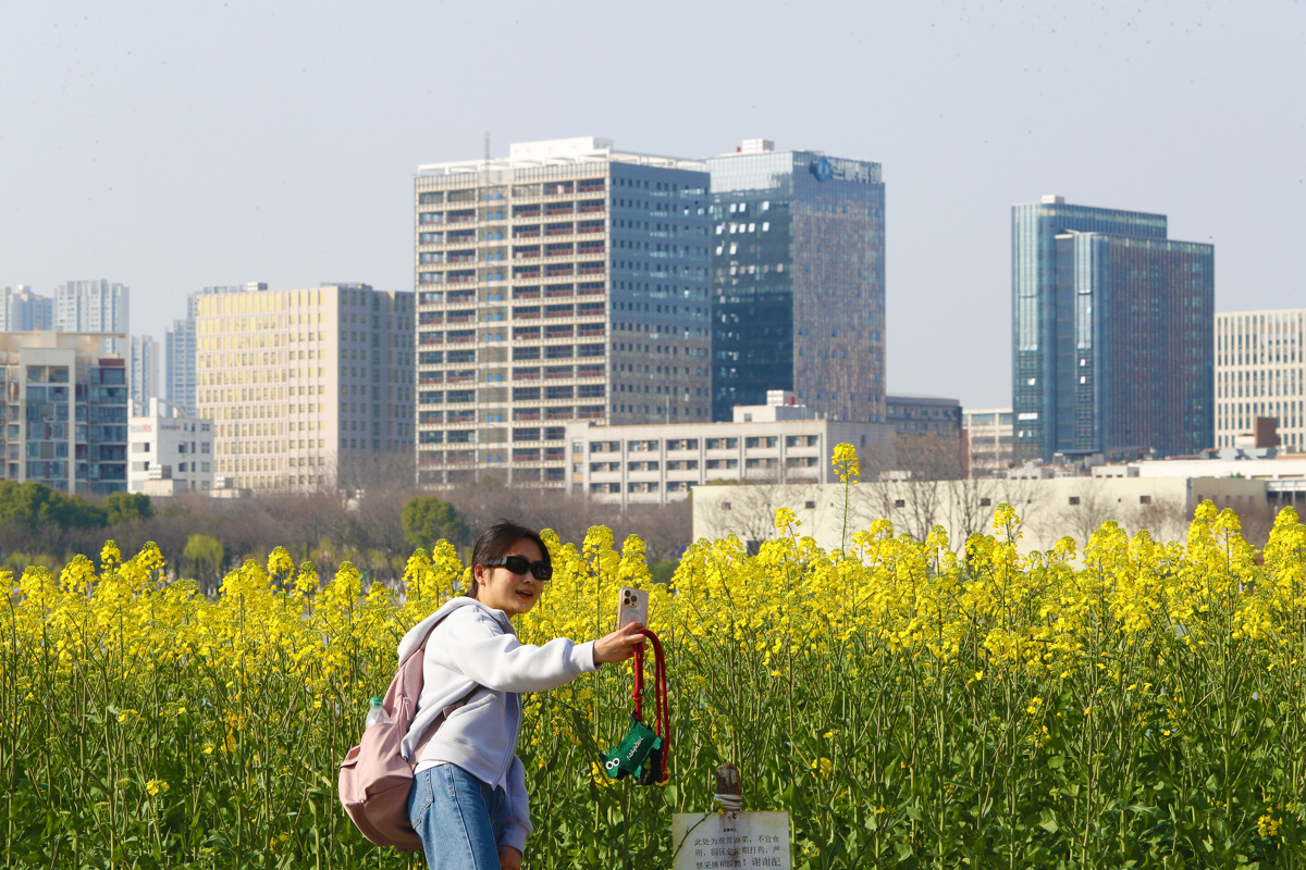 洪山区南湖幸福湾公园东侧,3000多平方米的油菜花田已展露风姿。金色的花海与波光粼粼的南湖交相辉映,微风拂过,花浪此起彼伏,清甜花香沁人心脾。