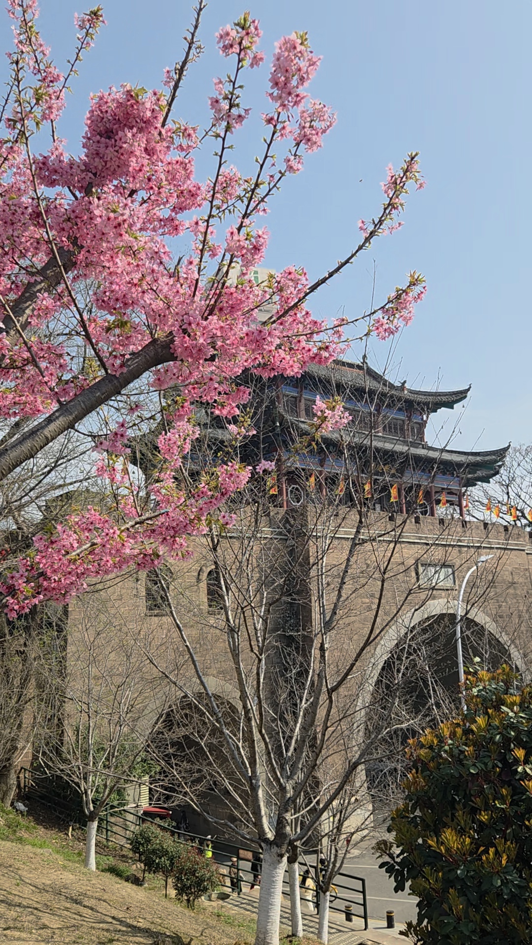 春日的龟山,樱花如海,游人如织。拾级而上,粉色云霞漫过山径,花瓣轻盈剔透,在阳光下泛起温柔光晕。镜头里,繁花与电视塔、长江大桥同框;镜头外,人们踮脚张望,争相定格这刹那芳华。春风拂过,花雨纷飞,落在肩头,也落进满山的热闹里。