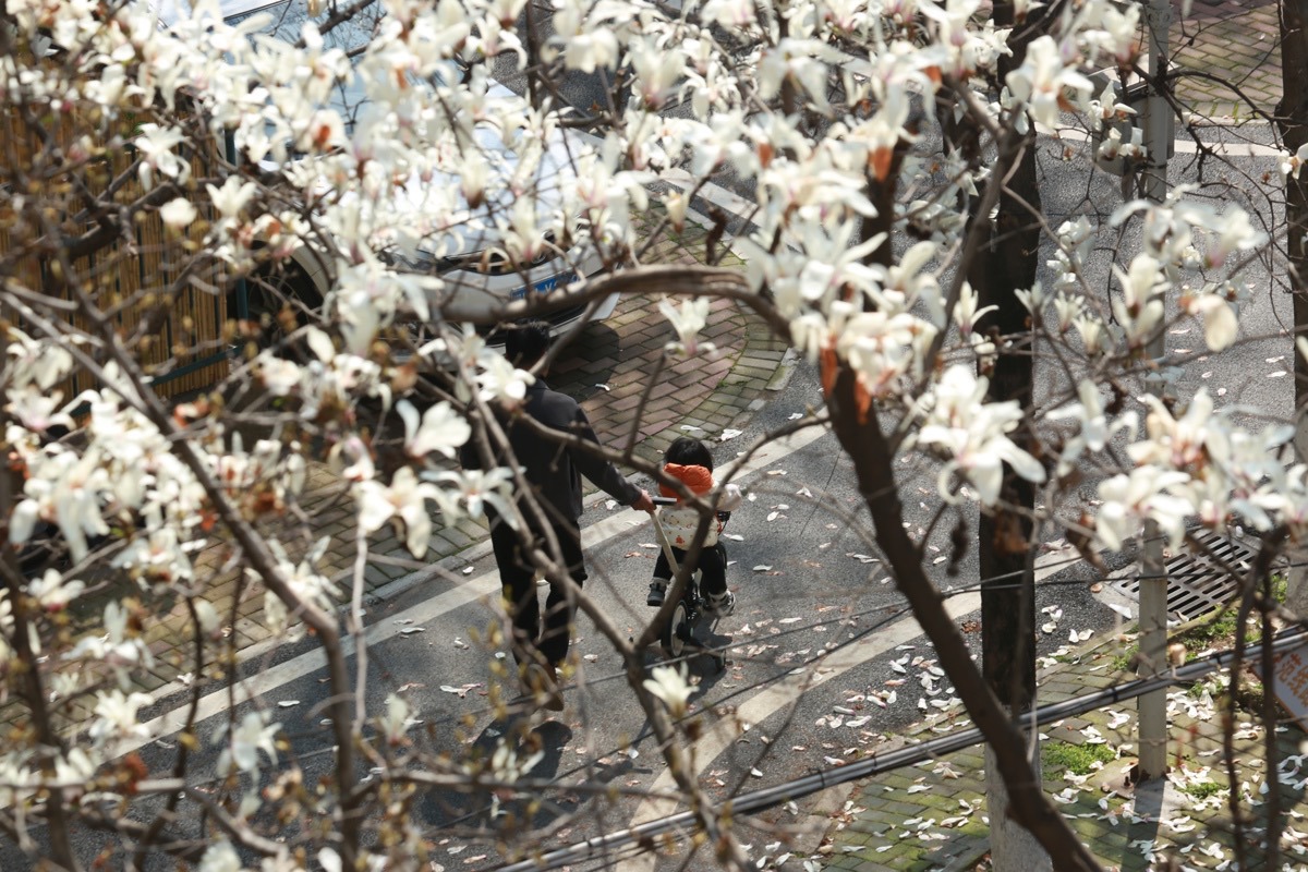 青山区钢花村街道110社区玉兰花迎来盛花期,洁白似雪的花朵缀满枝头,与居民楼、街巷烟火相互映衬,勾勒出一幅清新治愈的春日画卷。因为玉兰成景、花香满城,这里也被居民亲切地称为“玉兰小区”。